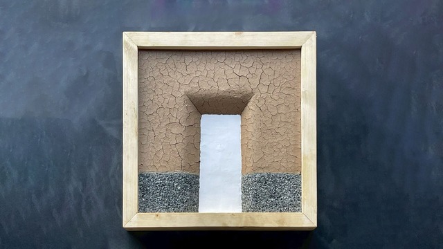 左官アートパネル 300mm × 300mm 蔵モチーフ三種仕上げ(Storehouse Panel) Japanese: 蔵をモチーフに、三種の仕上げで構成したアートパネル。 周囲は割れ壁で包み、時の経過と風化の美を表現。 腰から下は洗い出しで大地の力強さを、 入口部分は漆喰で清らかさを描いた。 異なる素材の対話が生み出す静かな重なりに、 日本建築が持つ“守る美しさ”と“継ぐ心”が息づいている。 English: Inspired by a storehouse, the panel combines three finishes. Cracked walls show time’s beauty, lower sections convey earth’s strength, entrance expresses purity. The material dialogue reflects Japanese spirit of protection and continuity. French: Inspiré d’un entrepôt, le panneau combine trois finitions. Les murs fissurés montrent la beauté du temps, le bas la force de la terre, l’entrée la pureté. Le dialogue des matériaux reflète l’esprit japonais de protection et de continuité.